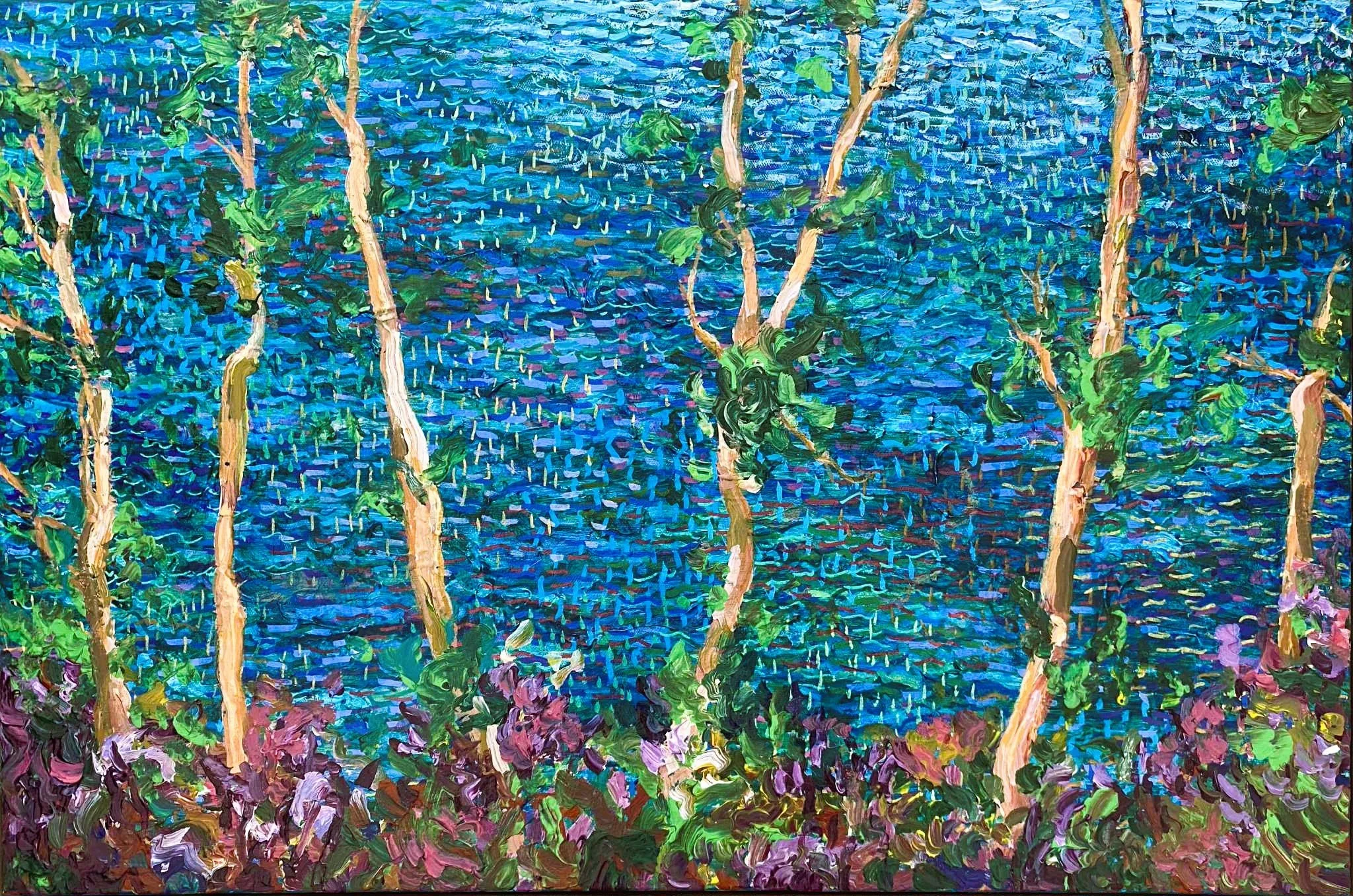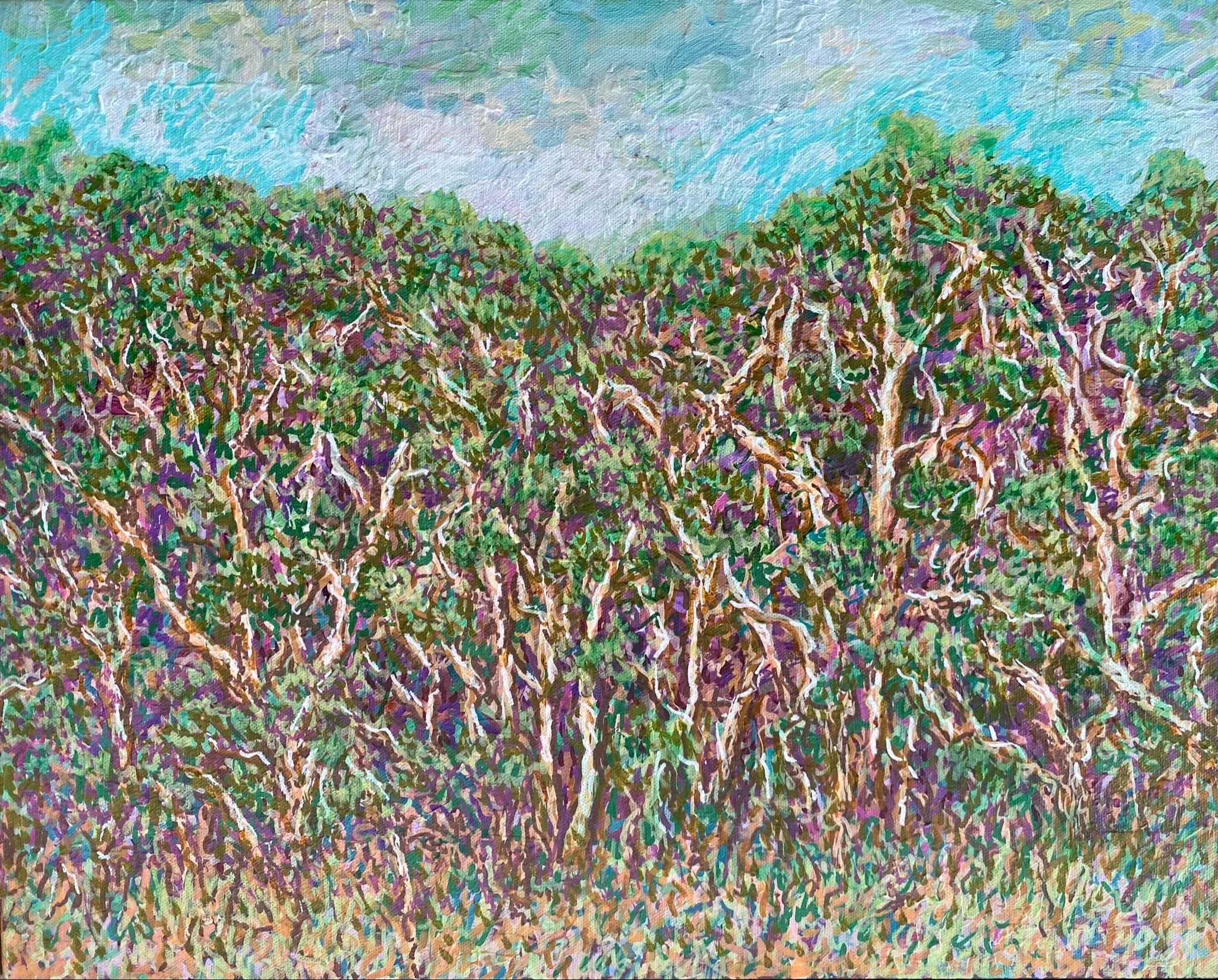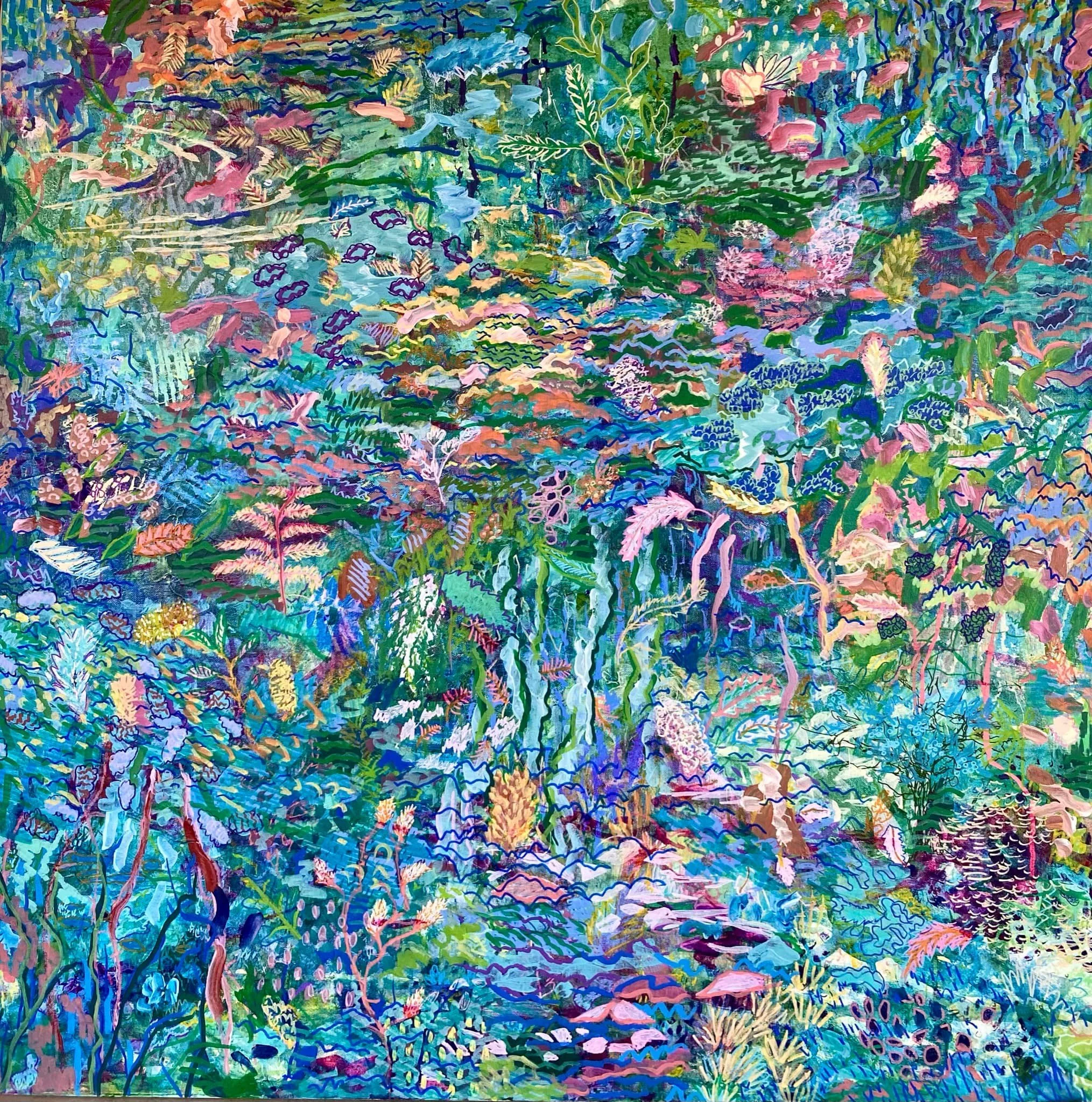 Though my paintings are often layered with pattern and texture, leaving little negative space, the process of creating them is deeply meditative. Through this layering, I strive to evoke a moment of peace—not emptiness, but the fullness of presence.