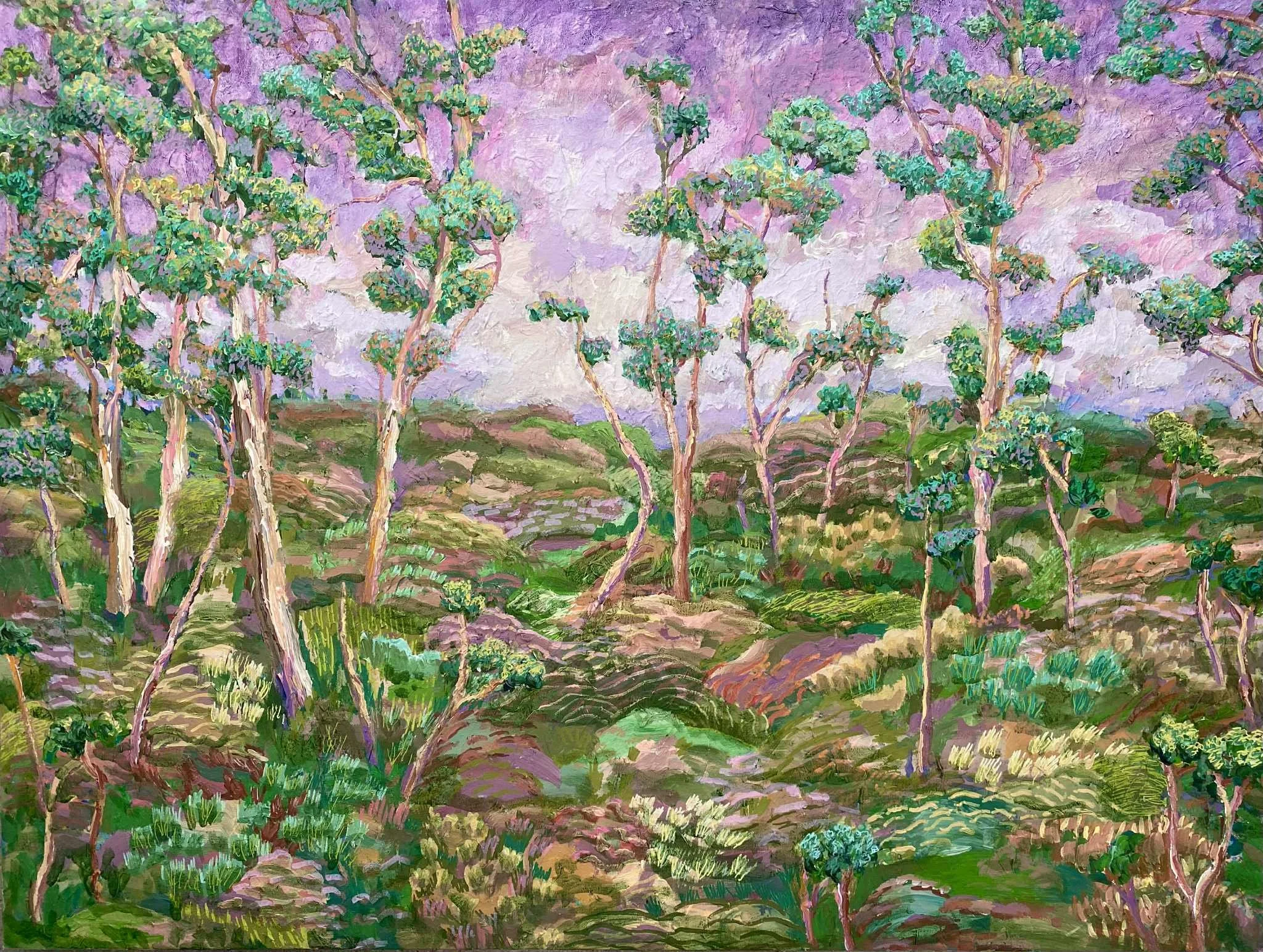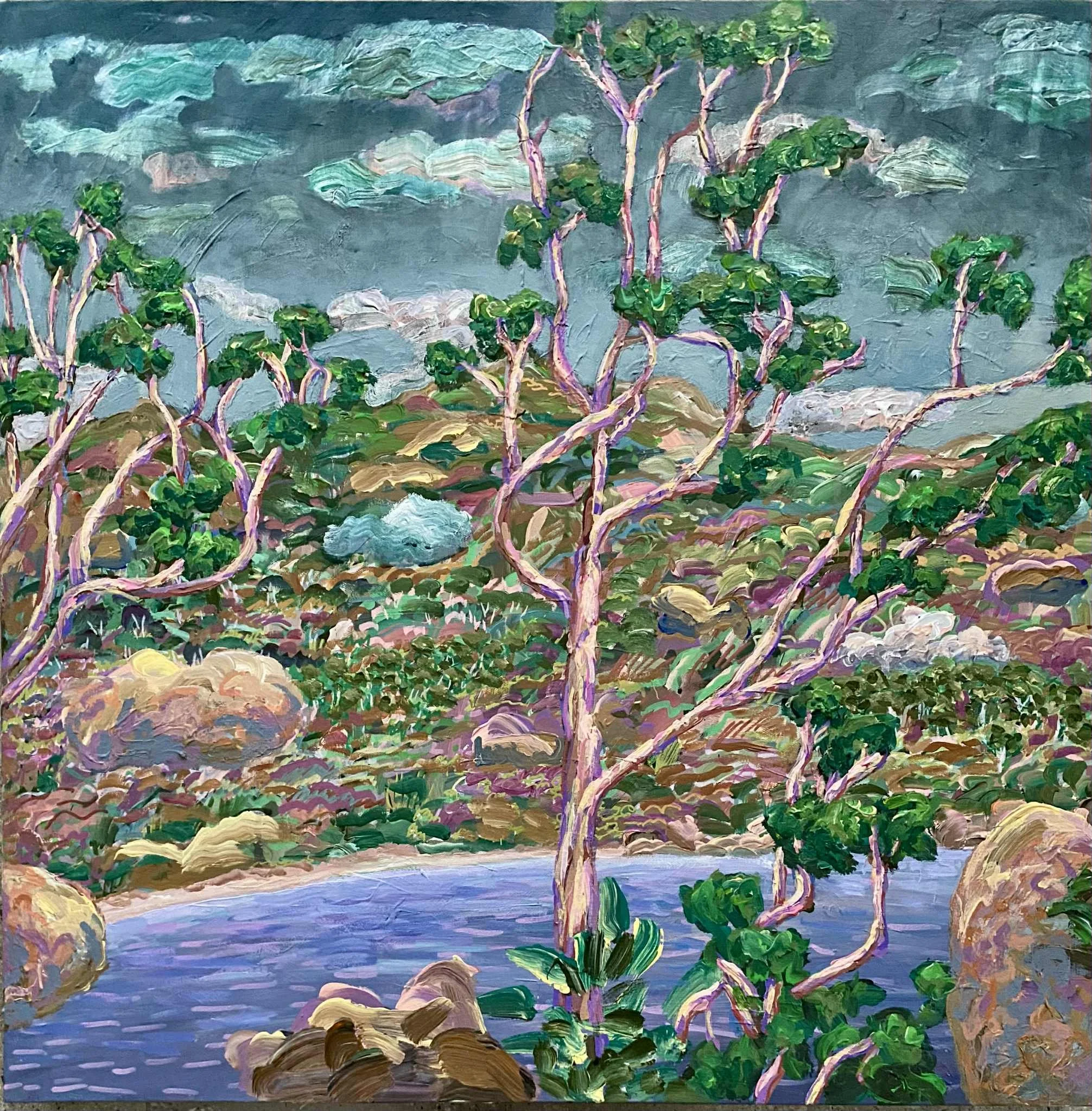 Landmarks is a series of paintings that captures personal memories embedded within the Tasmanian landscape. These natural spaces—places I return to time and again—inform my work in a way that feels both comforting and familiar, like revisiting old friends.